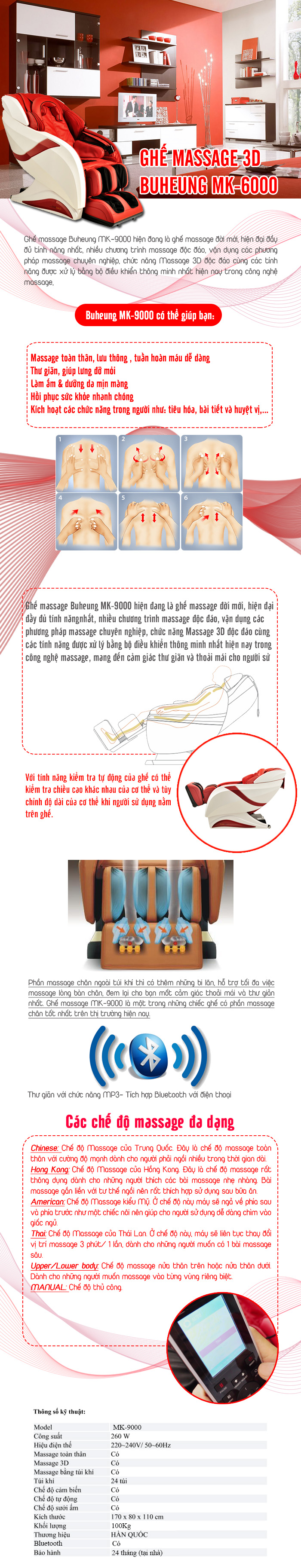 Ghế Massage Buheung MK-9000 (Đỏ phối trắng)
