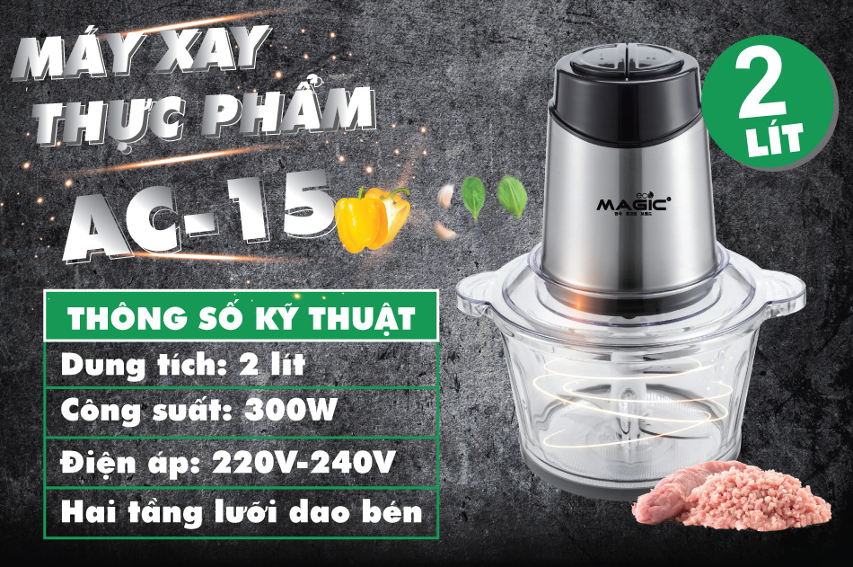 Máy xay thực phẩm Magic Eco AC-15 hiện đang là sản phẩm không thể thiếu cho mỗi gian bếp khi chị em nội trợ cần sơ chế các nguyên liệu cho bữa ăn. Cùng xem những tính năng nổi trội của sản phẩm này nhé!