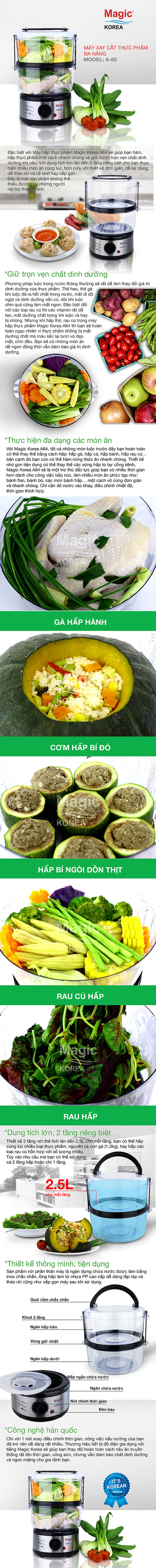 Nồi hấp thiết kế 2 tầng hấp. Dung tích: 5 lít Hấp được nhiều loại thực phẩm cùng một lúc Giữ lại chất dinh dưỡng trong thực phẩm Công suất 500W, hấp thực phẩm nhanh Thương hiệu Hàn Quốc Bảo hành 12 tháng